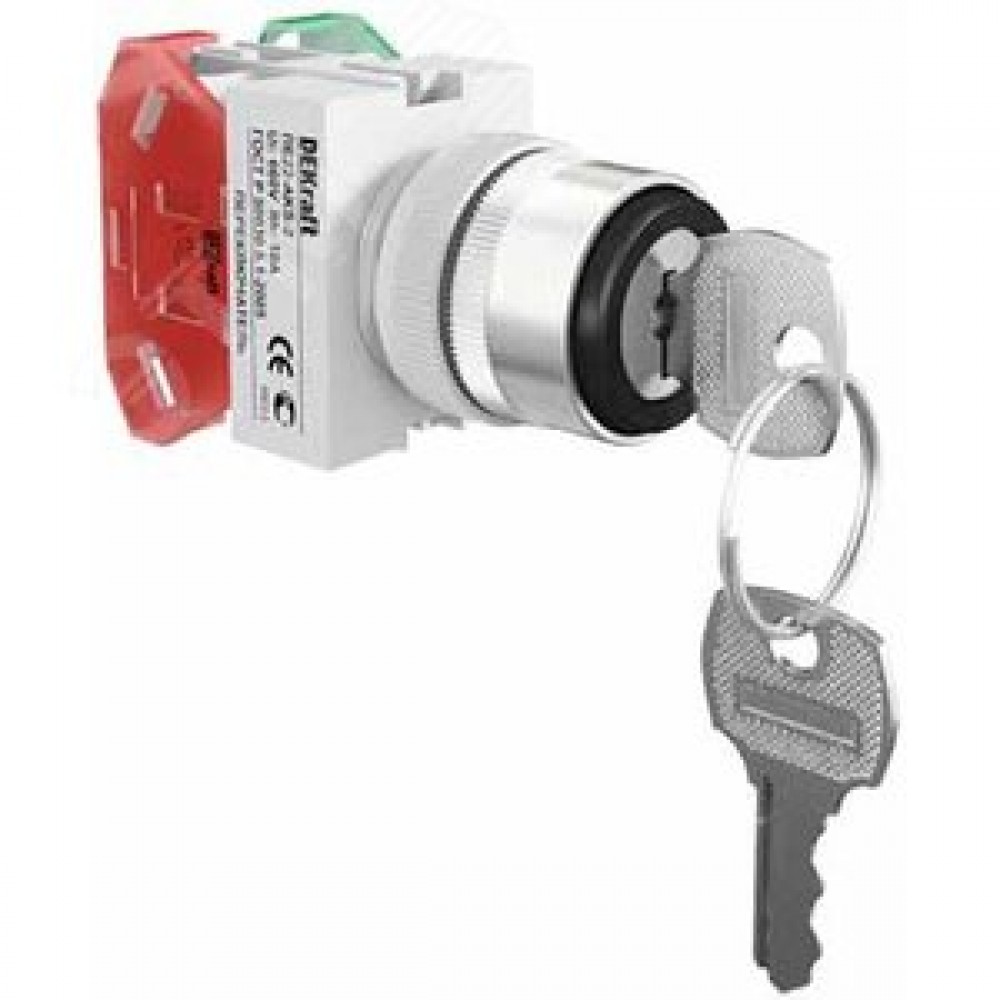 Технические характеристики Переключатель AKS-2 22мм с ключом 2 позиции I-O черная ручка