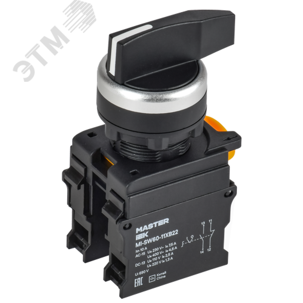 Технические характеристики Переключатель длин. ручка 2 полож. возвр. 1NO+1NC MASTER