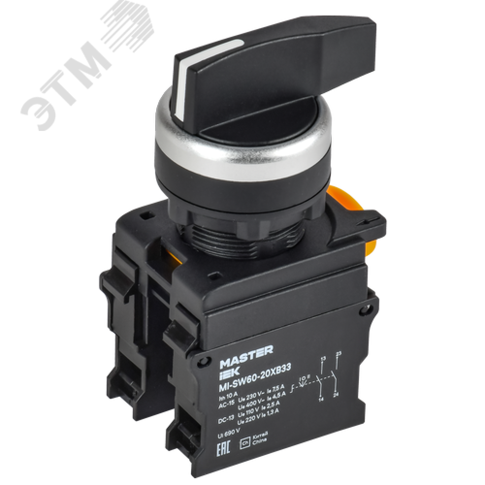 Технические характеристики Переключатель длин. ручка 3 полож. возвр. 2NO MASTER