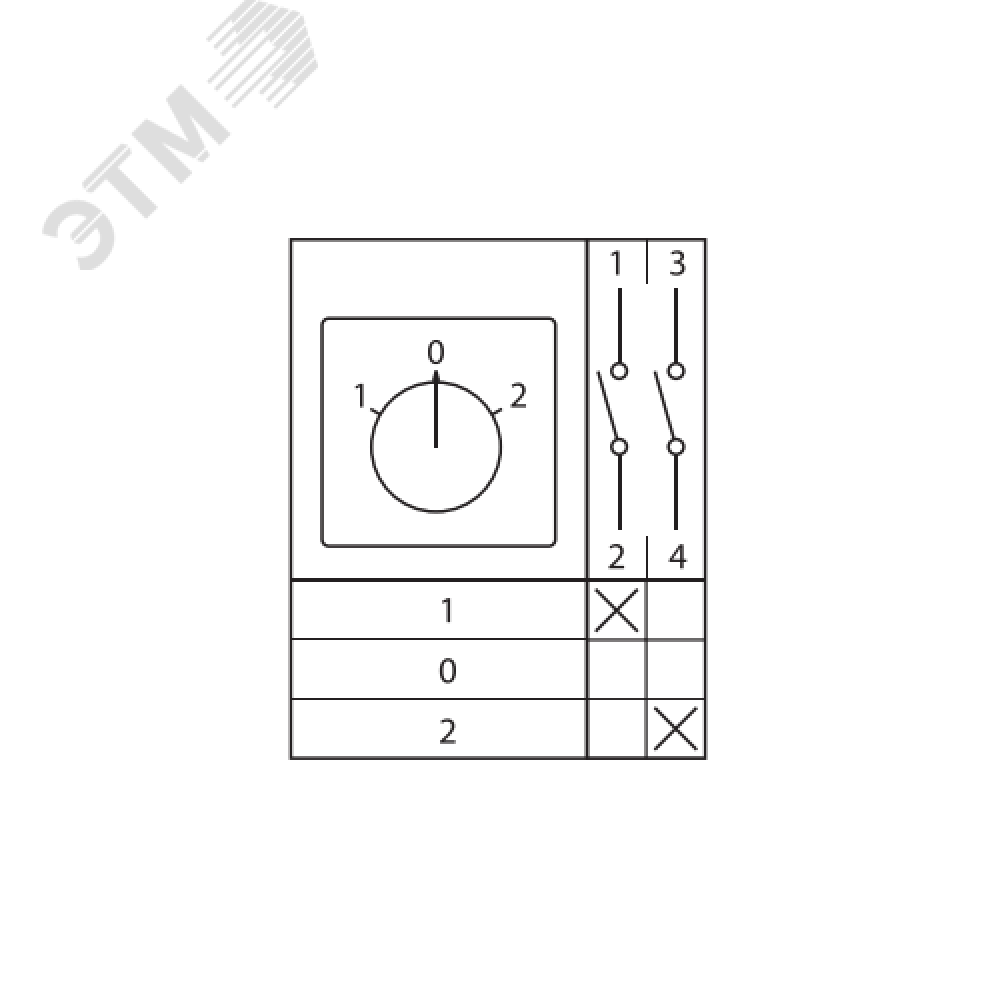 Технические характеристики Переключатель кулачковый ПК-1-21 10А 1P 1-0-2