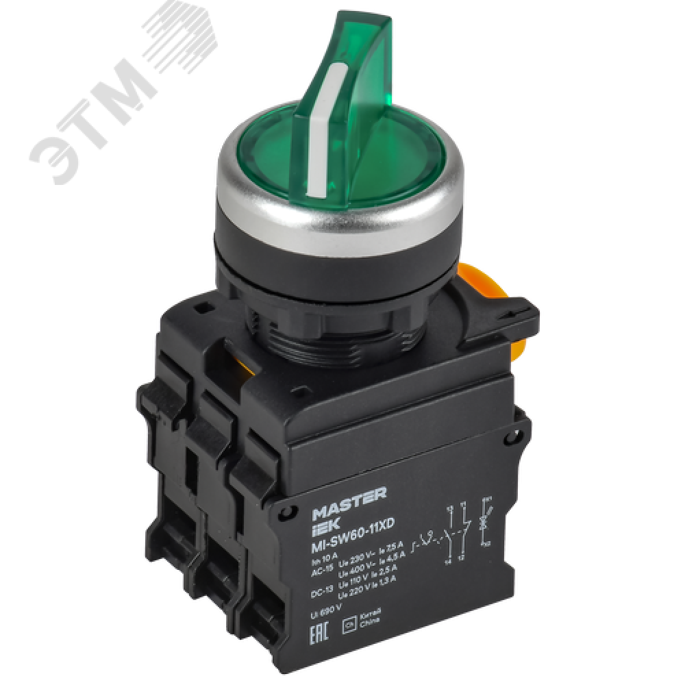 Переключатель с подсв. 2 полож. 1NO+1NC зеленый MASTER 0 537 ₽