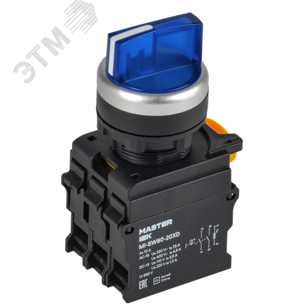 Технические характеристики Переключатель с подсветкой 3 полож. 2NO синий MASTER