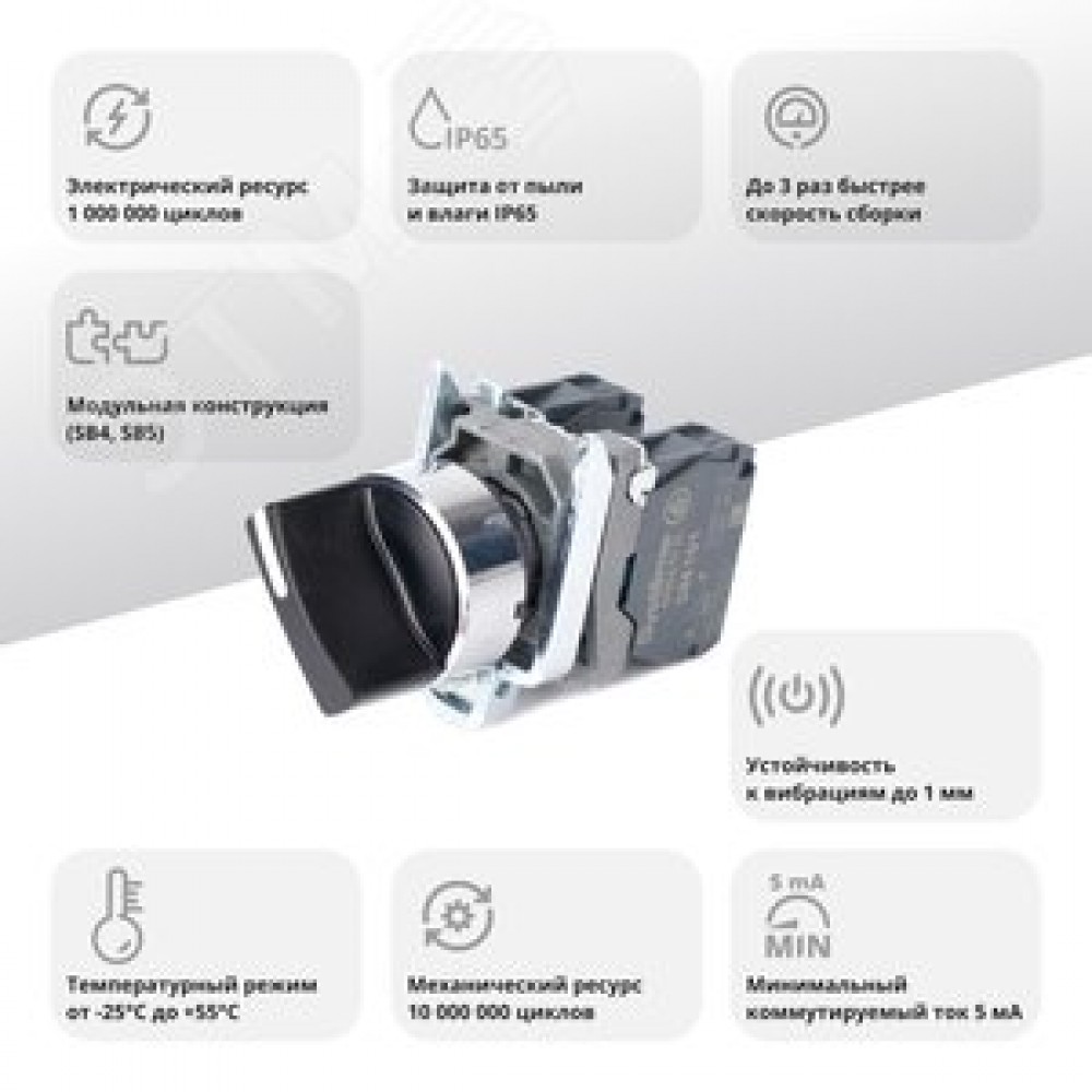 • Переключатель SB4 в сборе модульный 22мм 2 позиции с фиксацией 1НО+1НЗ