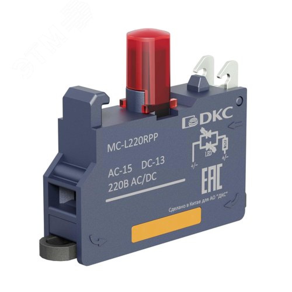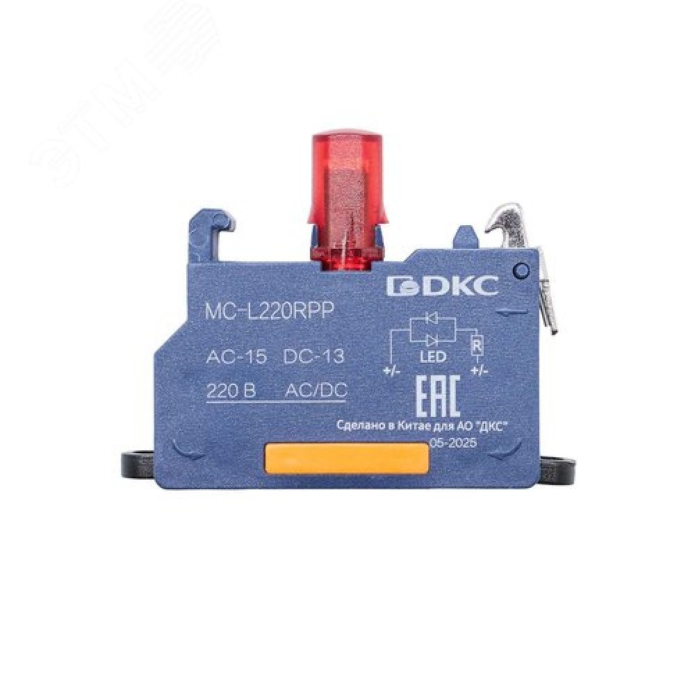 • Контактный блок с клеммным безвинтовым зажимом со светодиодом на 220В, красный