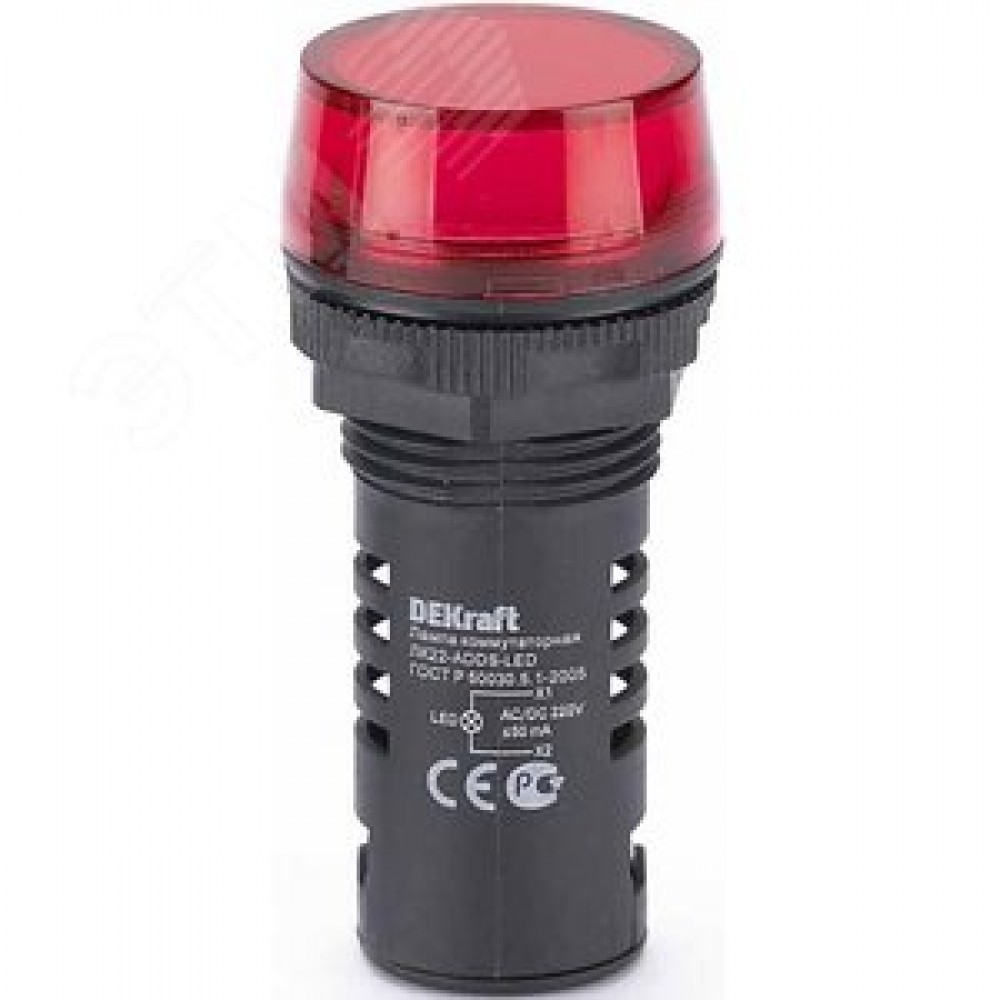 Технические характеристики Лампа коммутационная ЛК-22 ADDS диам. 22мм LED красная 220В AC/DC