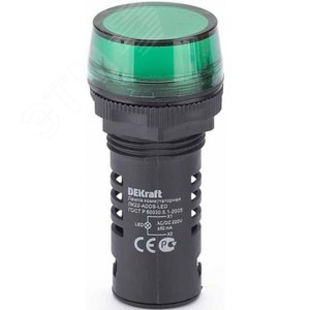 Лампа коммутационная ЛК-22 ADDS диам. 22мм LED зеленая 220В AC/DC