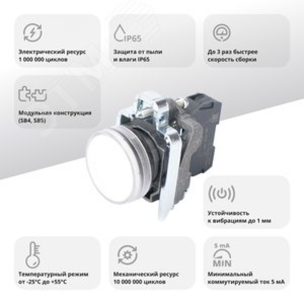 Технические характеристики Лампа сигнальная в сборе модульная 22 мм белая 24В DC