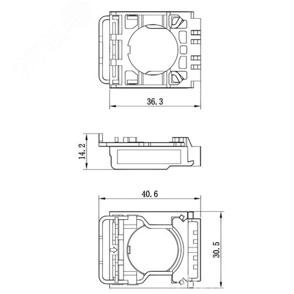 Технические характеристики Монтажное основание для крепления головок кнопок, переключателей и контактных блоков