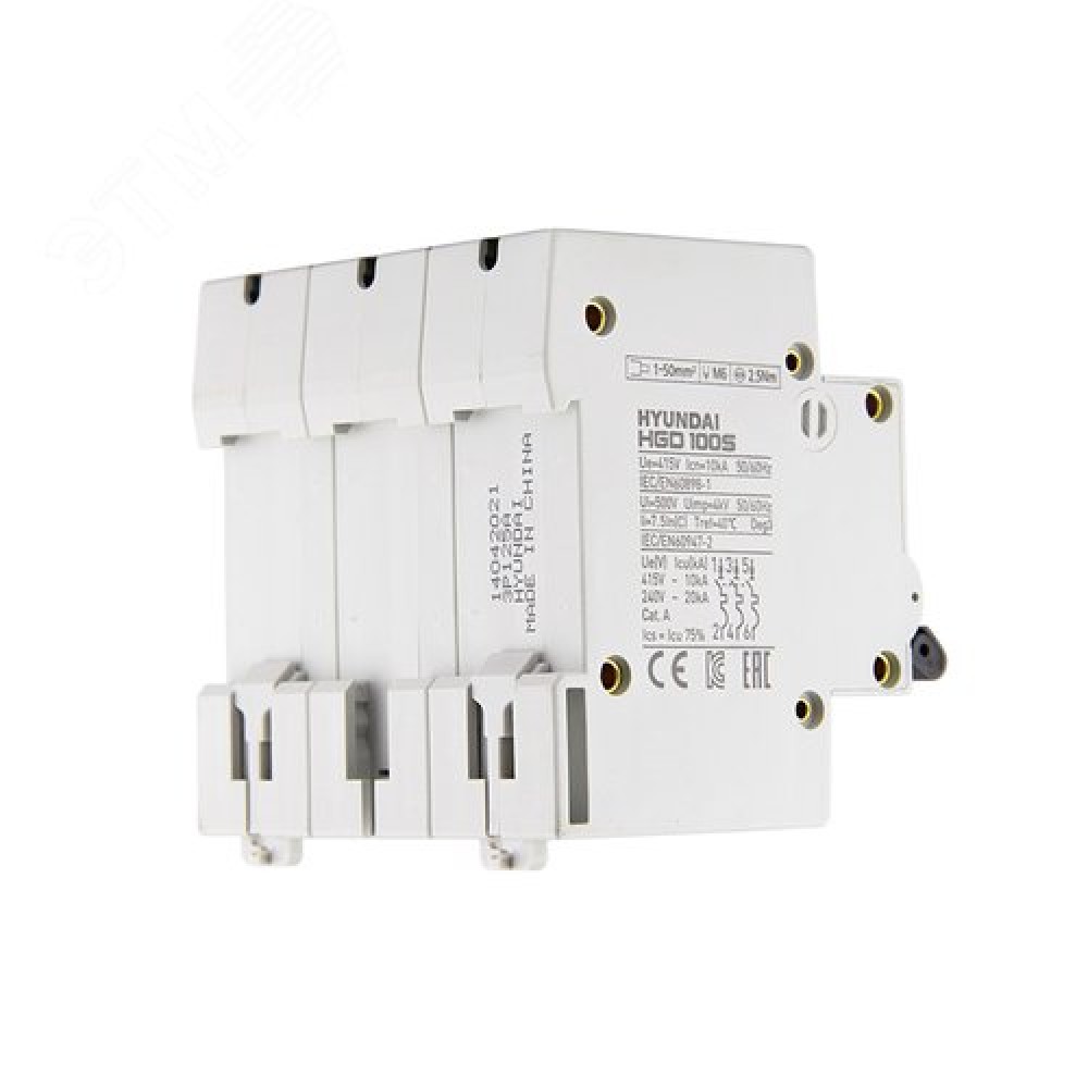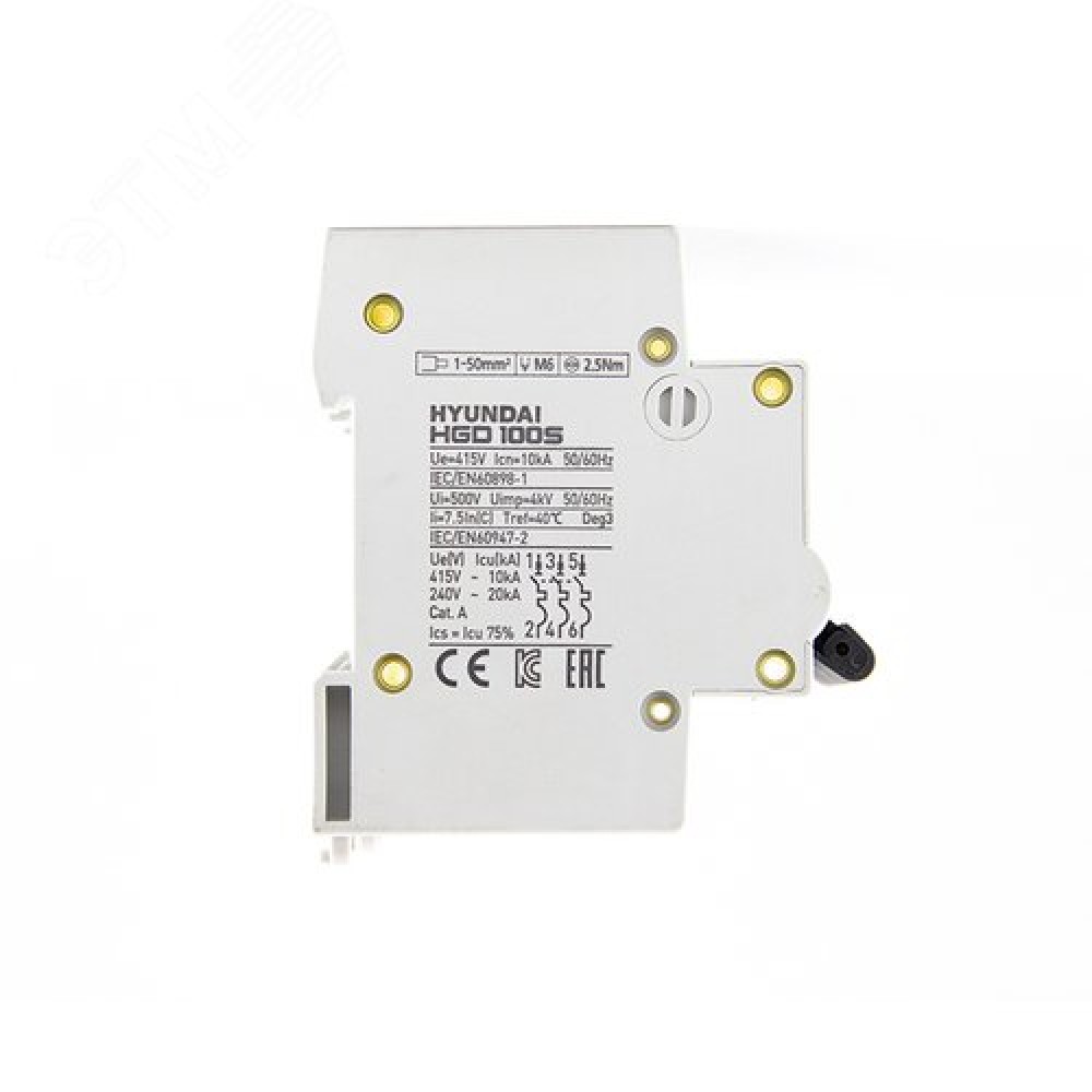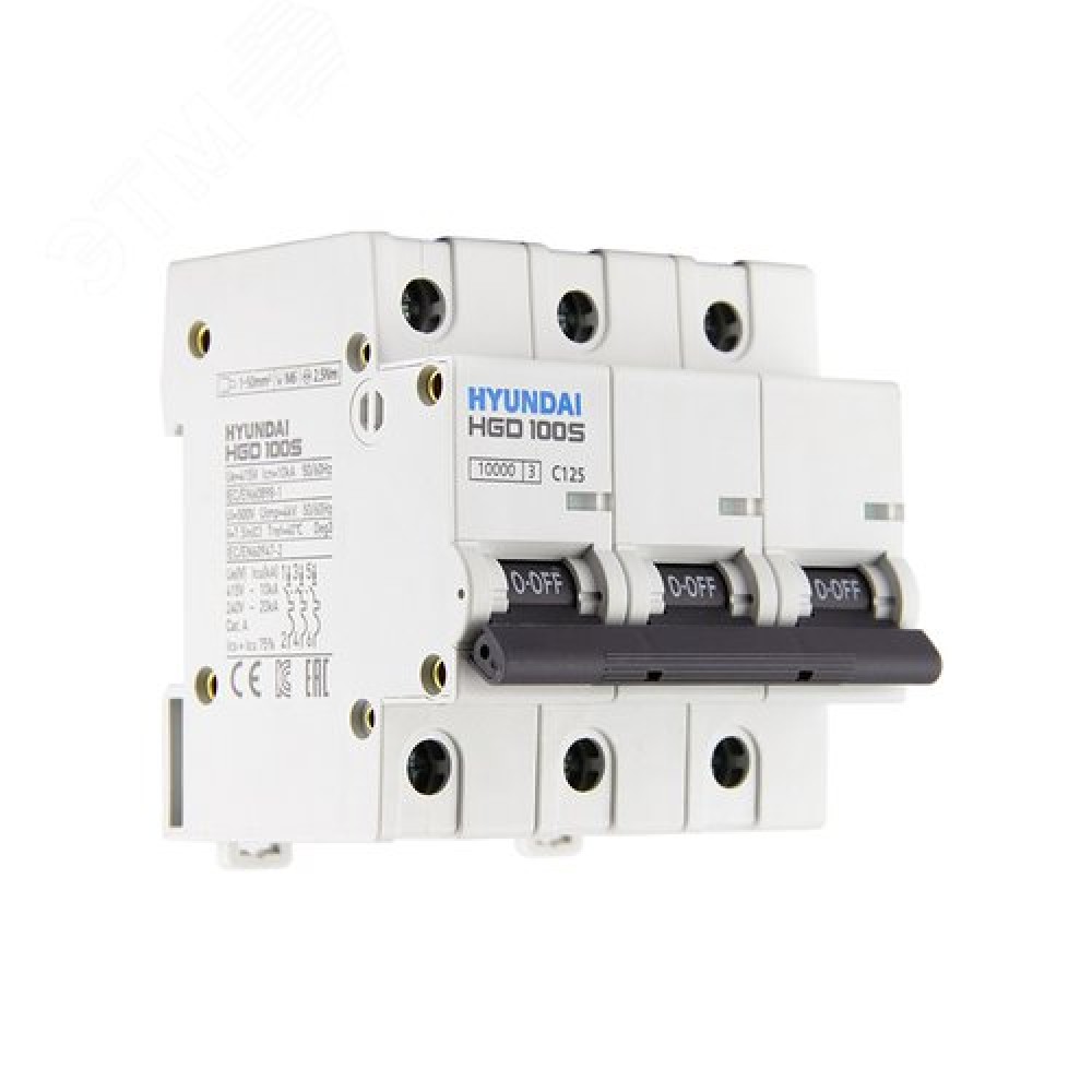 Технические характеристики Автоматический выключатель HGD100S 3PMCS0000C 00125 3 полюса, 125А, ток к.з. 10kA, хар-ка C (STANDARD)