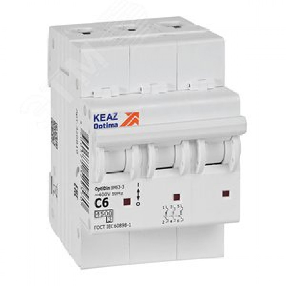 • Выключатель автоматический трехполюсный 6А C 4,5кА AC OptiDin BM63-3C6-4,5-УХЛ3