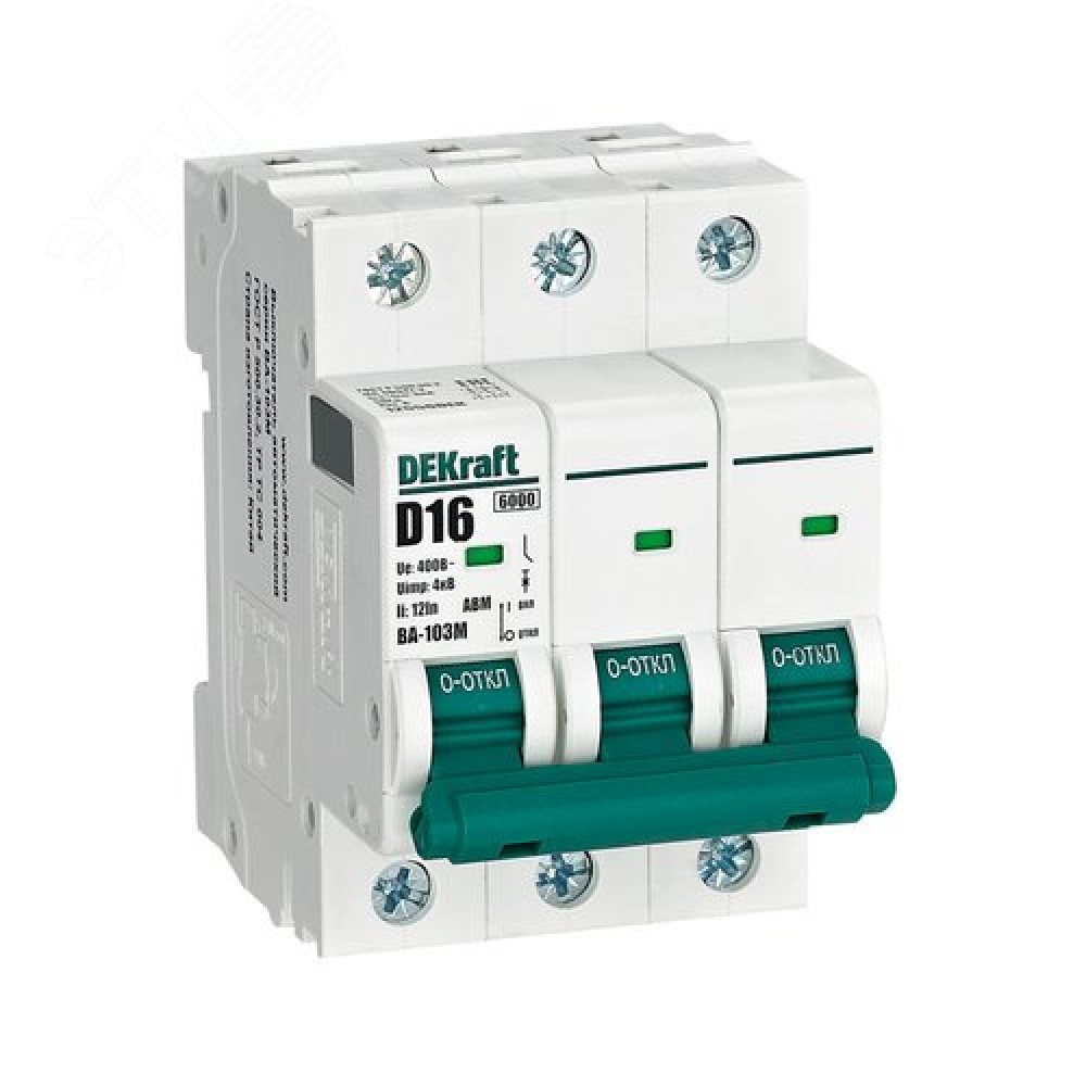 Технические характеристики Выключатель автоматический 3Р 16А D 6кА ВА103 М