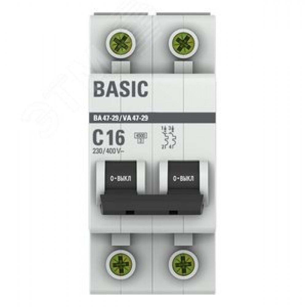 | Комплектация | автоматический выключатель ВА 47-29 2P 16А (C) 4,5кА BASIC |