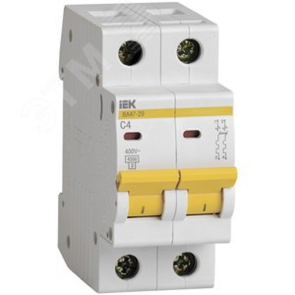 • Выключатель автоматический двухполюсный 4А С ВА47-29 4.5кА
