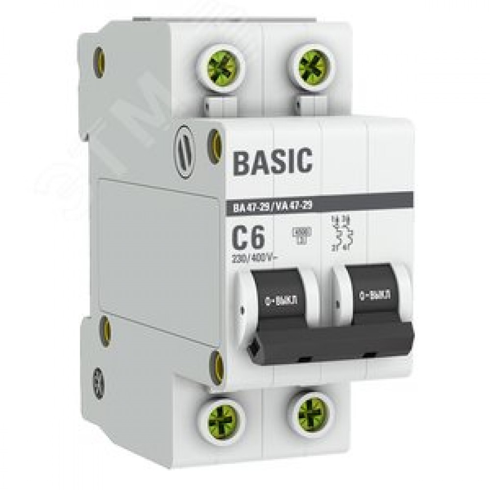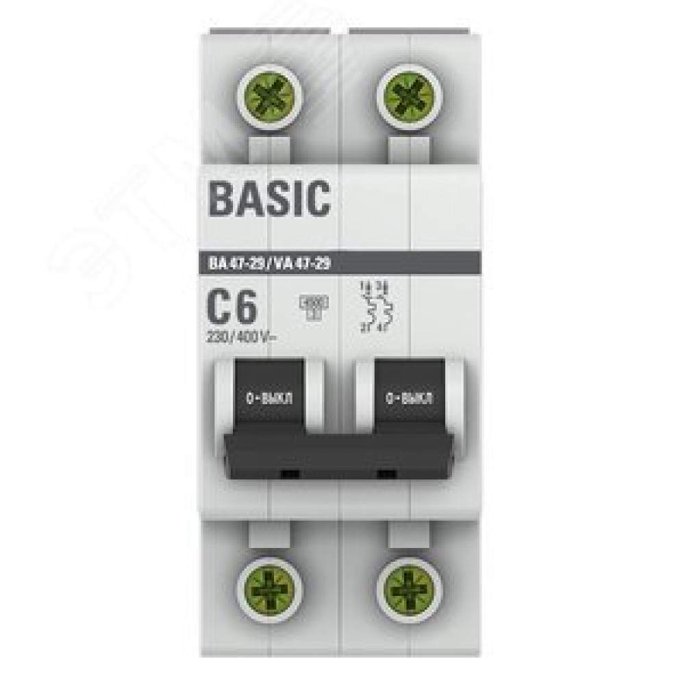 | Комплектация | автоматический выключатель ВА 47-29 2P 6А (C) 4,5кА BASIC |