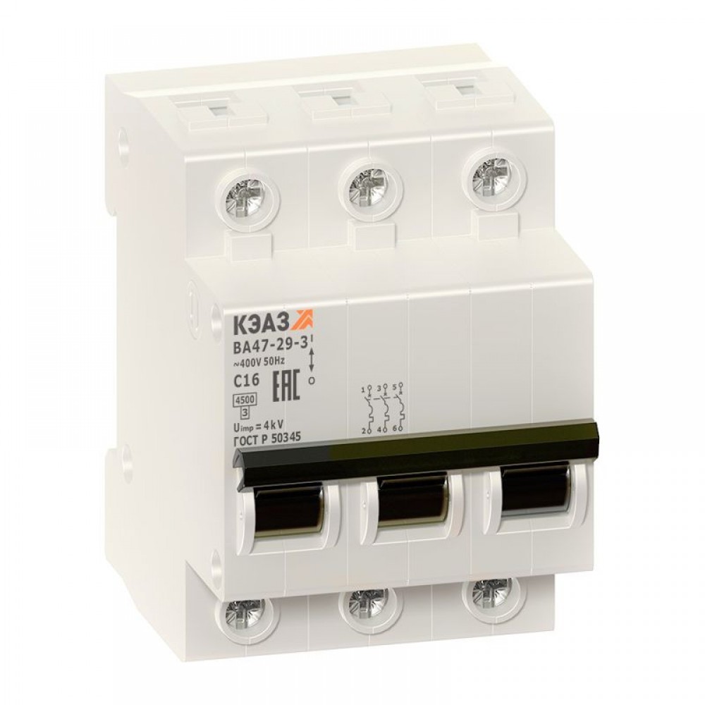 Выключатель автоматический модульный 3п C 16А 4.5кА ВА47-29-3C16-УХЛ3 КЭАЗ 141613