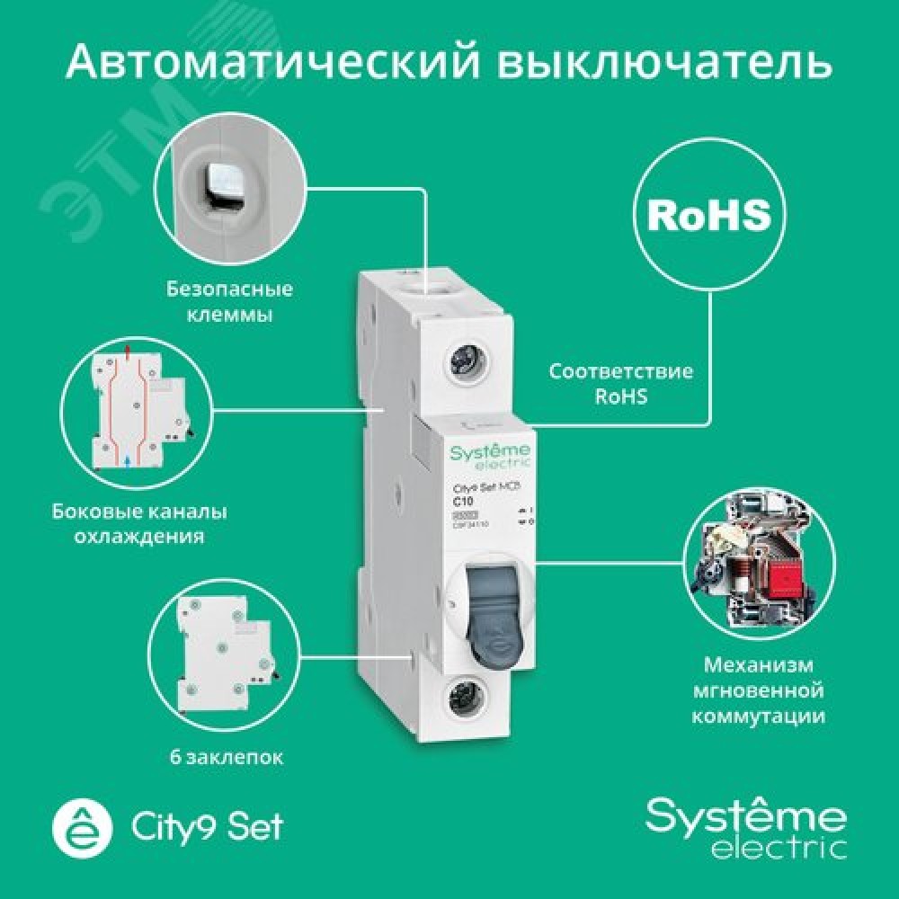 Выключатель автоматический однополюсный 10А С 4.5kA 230В City9 Set