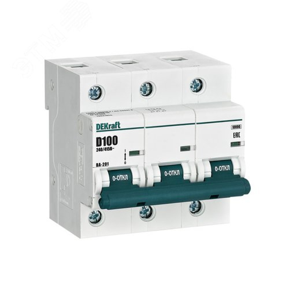 • Выключатель автоматический трехполюсный 100А D ВА-201 10кА