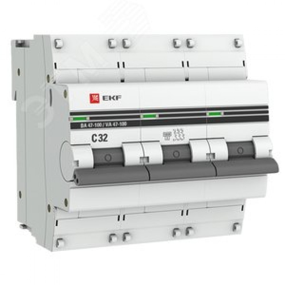 Выключатель автоматический трехполюсный 32А C ВА 47-100 10кА PROxima