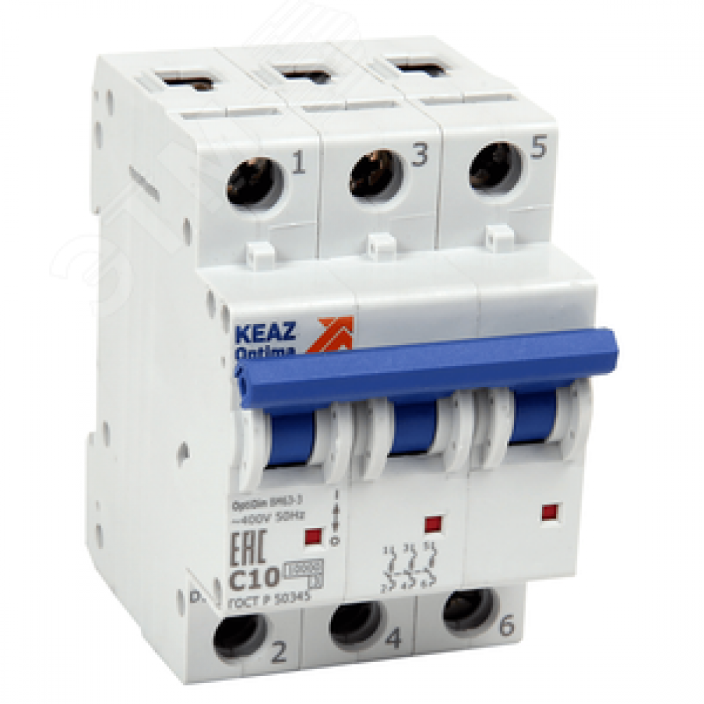 • Выключатель автоматический трехполюсный 63А C 10кА AC OptiDin BM63-3C63-10-УХЛ3