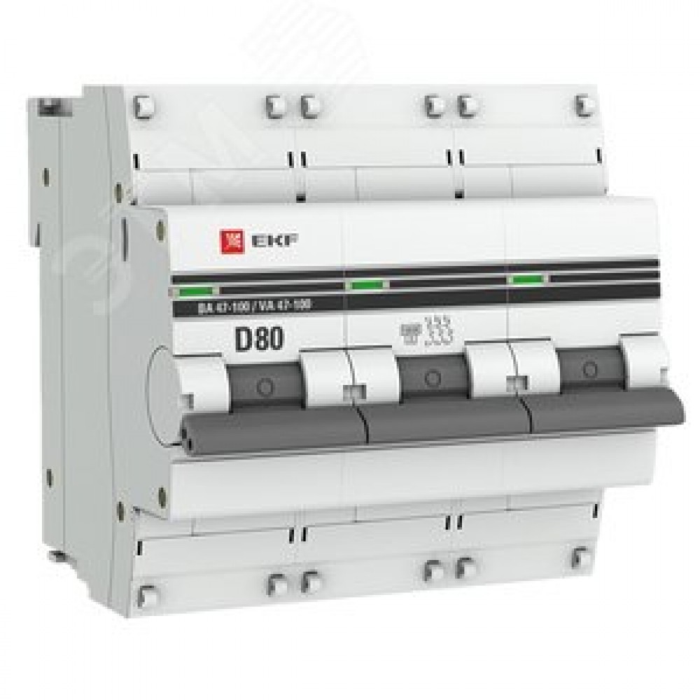Выключатель автоматический трехполюсный 80А D ВА47-100 10кА PROxima 0 1952 ₽