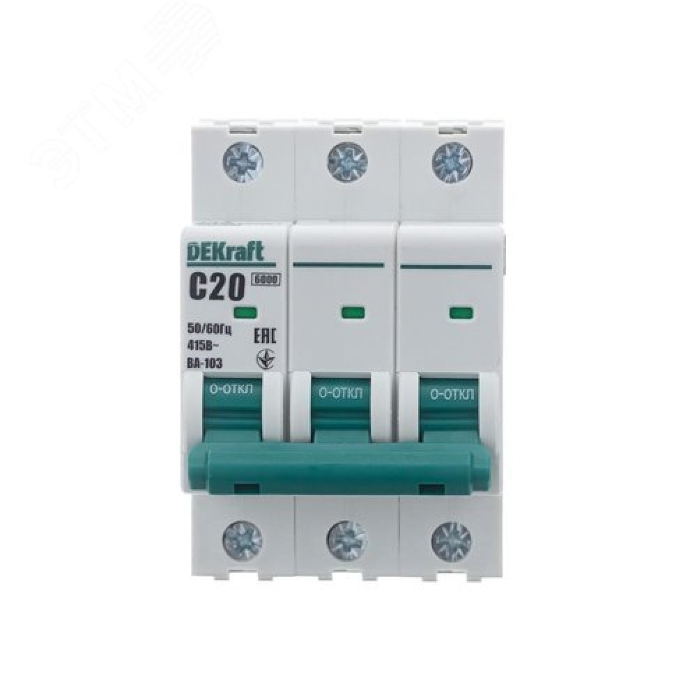 Технические характеристики Выключатель автоматический ВА-103 3P 20А C 6кА новый