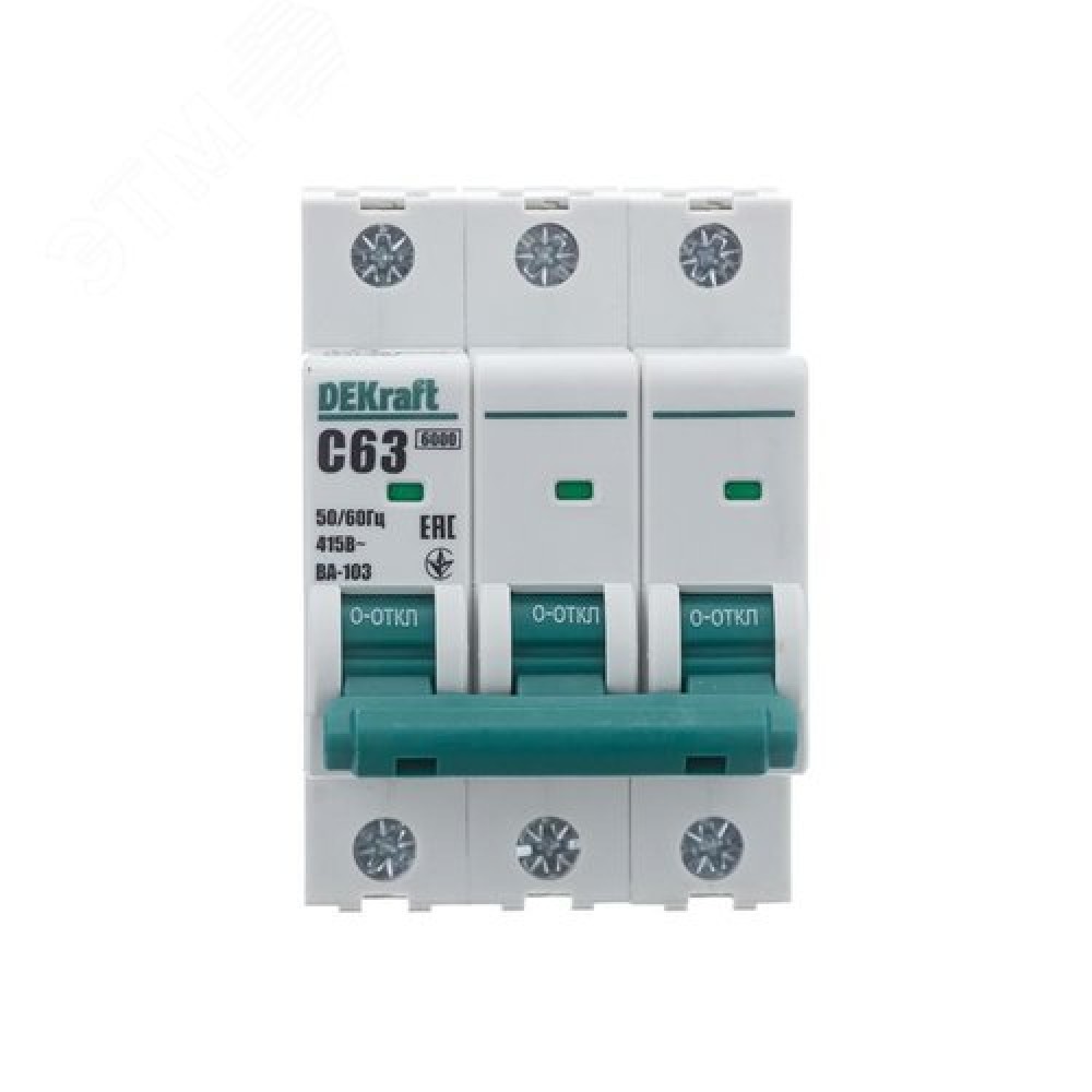 Технические характеристики Выключатель автоматический ВА-103 3Р 63А C 6кА новый