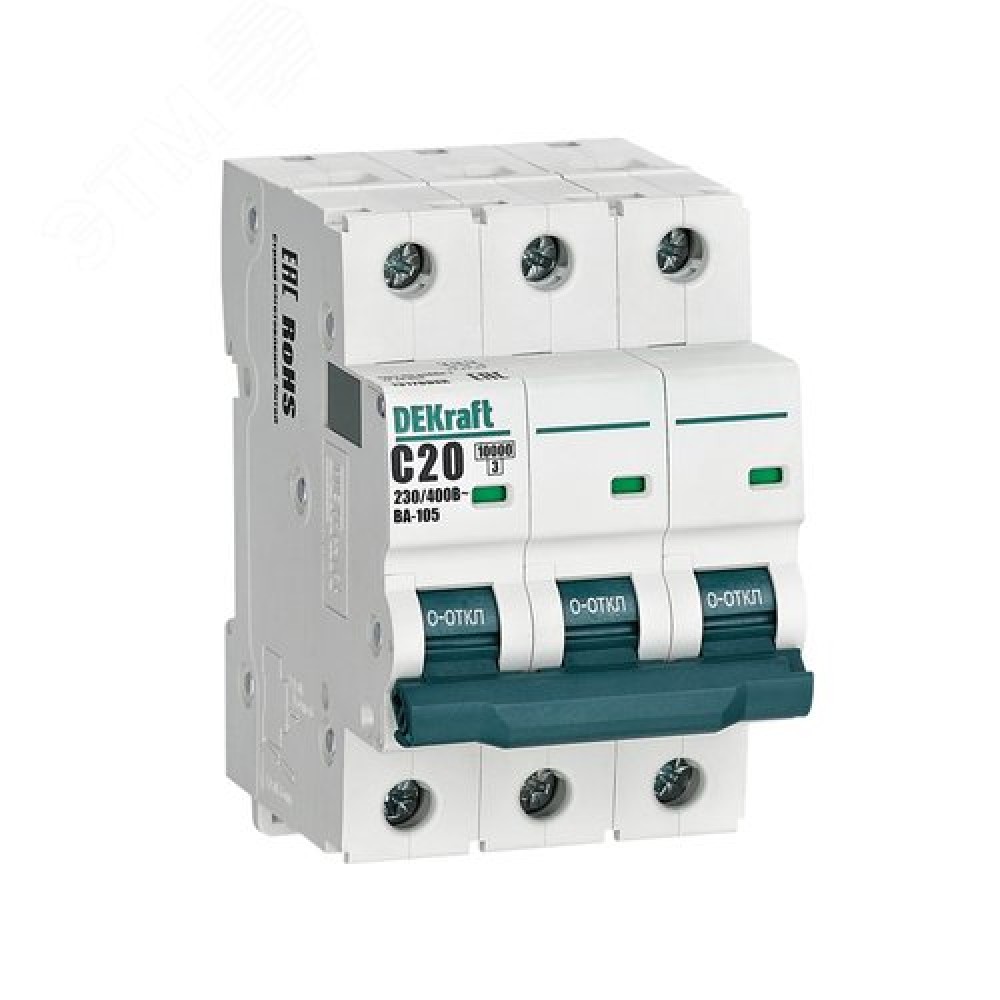 Технические характеристики Выключатель автоматический 3P кривая C 20A 10кА ВА-105