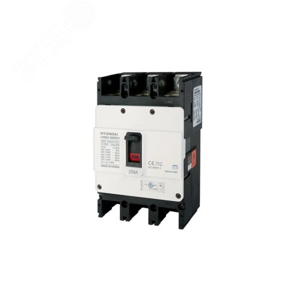 Автоматический выключатель в литом корпусе типа HGM, типоразмера 250AF, арт.HGM250H3PT4S0000C00160F (160А, 38кА, 3 полюса, регулируемый термомагнитный расцепитель, переднее подключение)