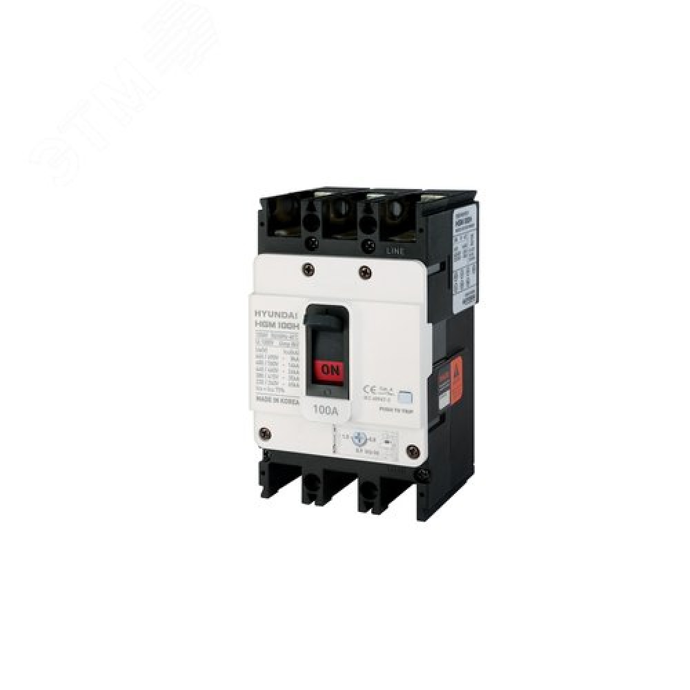 • Выключатель автоматический в литом корпусе типа HGM, типоразмера 100AF, арт.HGM100H3PT4S0000C00063F (63А, 26кА, 3 полюса, регулируемый термомагнитный расцепитель, переднее подключение)