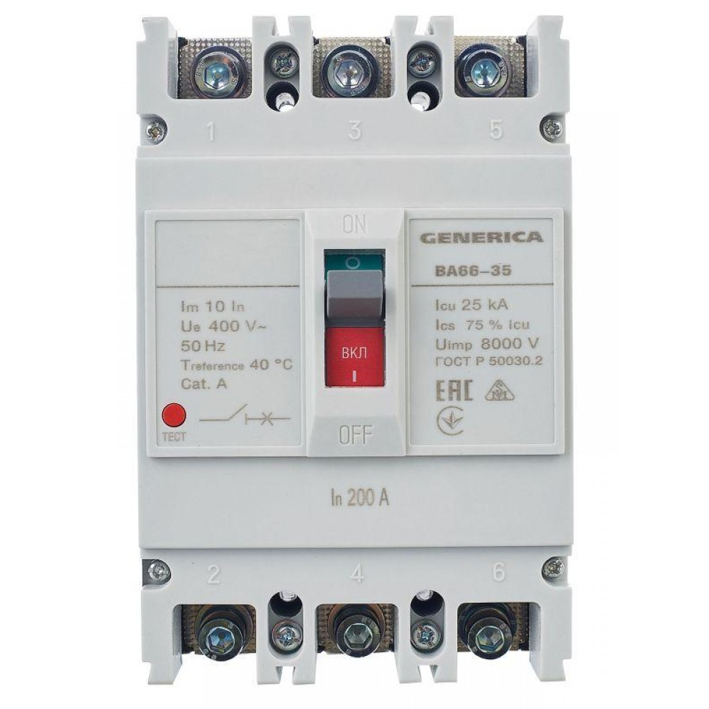 Выключатель автоматический 3п 200А 25кА ВА66-35 GENERICA SAV30-3-0200-G