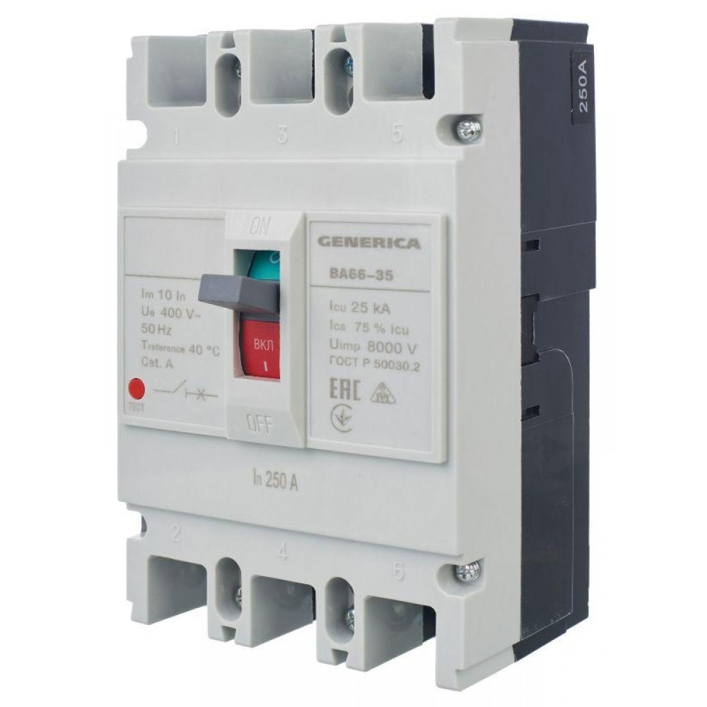 Выключатель автоматический 3п 250А 25кА ВА66-35 GENERICA SAV30-3-0250-G