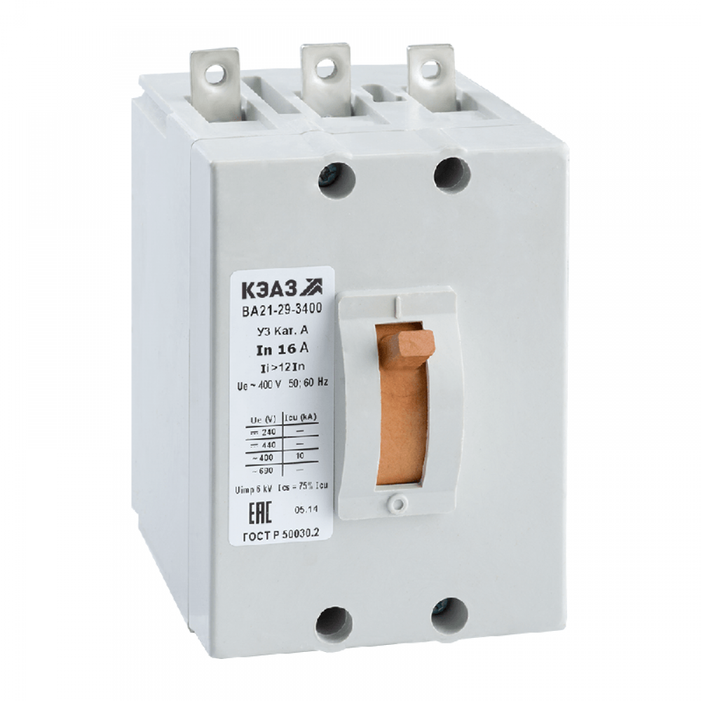 Технические характеристики Выключатель автоматический 3п 5А 12Iн 10кА ВА21-29-340010 У3 400В AC КЭАЗ 100692