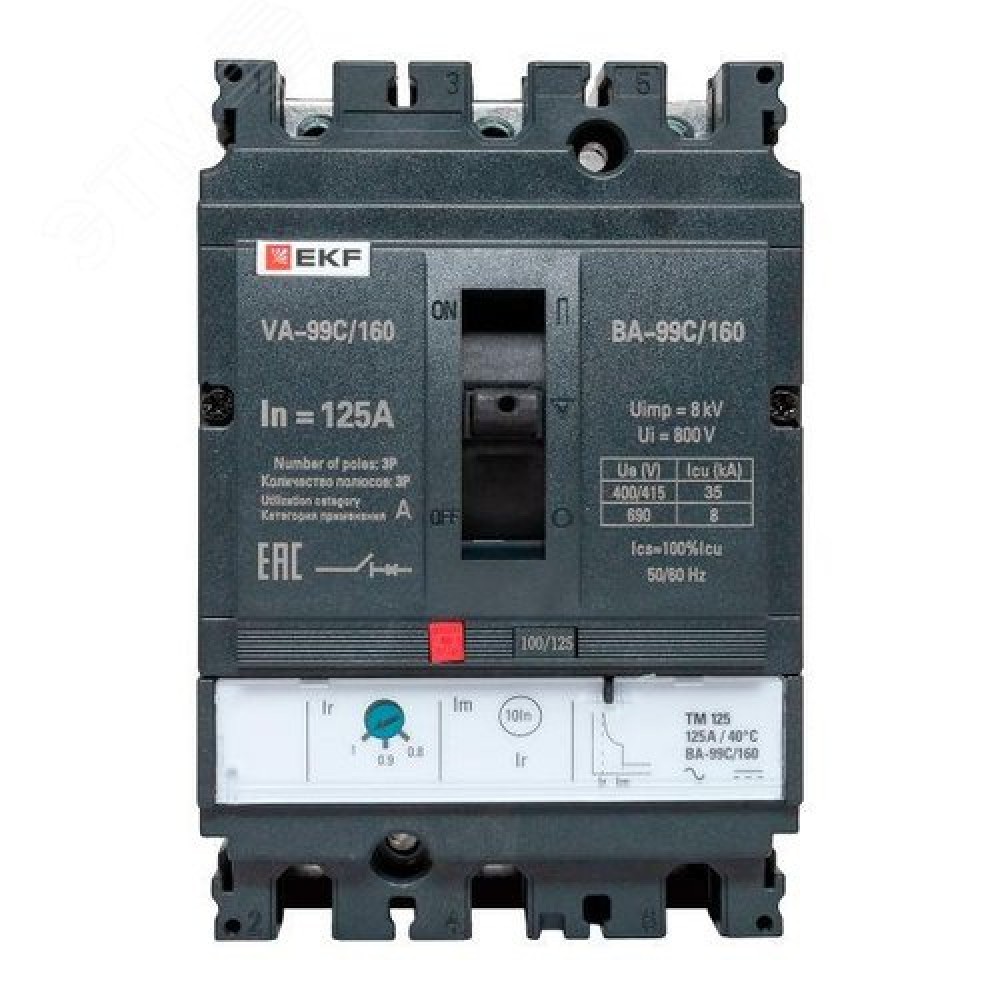 Технические характеристики Выключатель автоматический ВА-125А 35кА ВА-99С/160 3 полюса