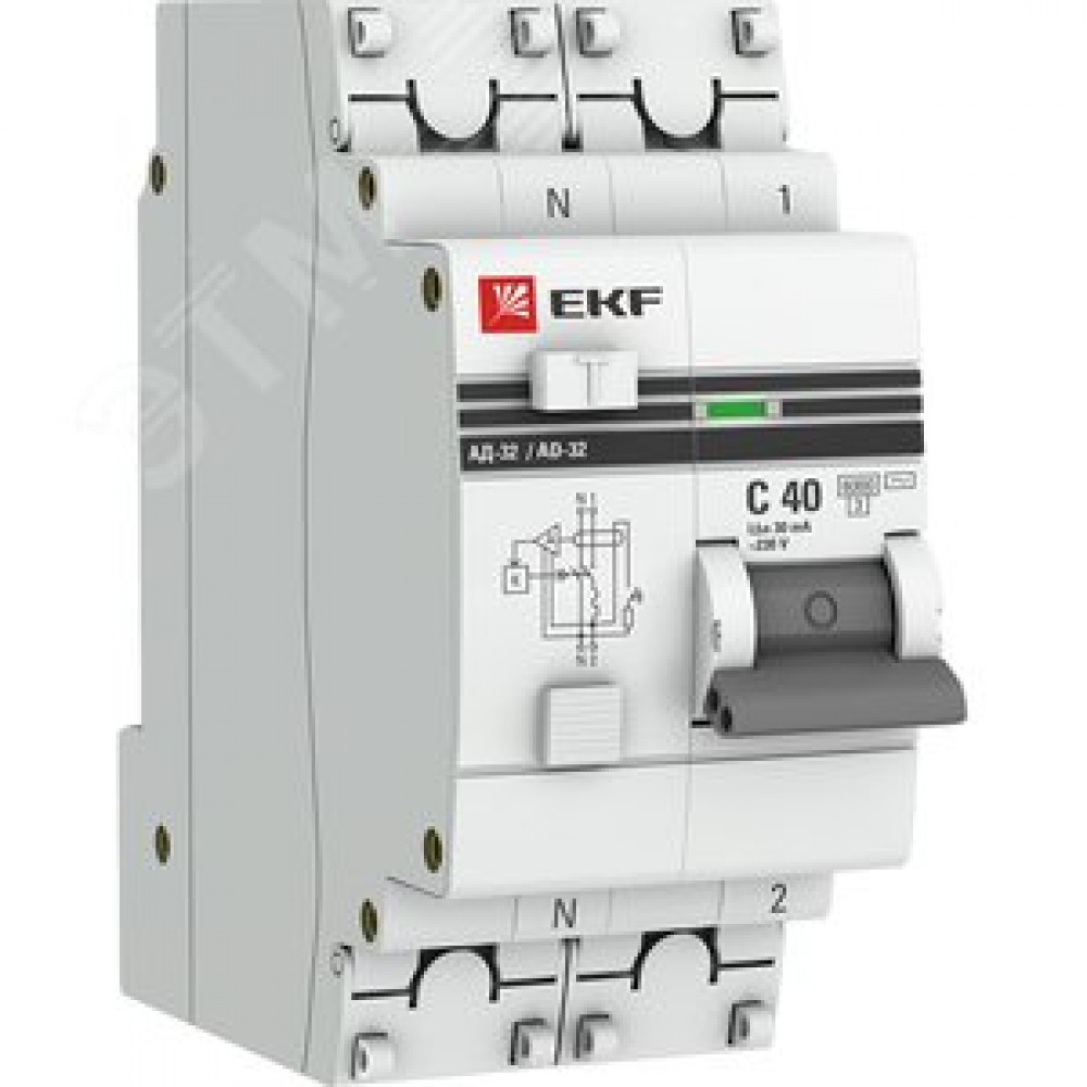 Автомат дифференциальный АД-32 1P+N 40А/30мА (характеристика C, AС, электронный, защита 270В) 6кА PROxima