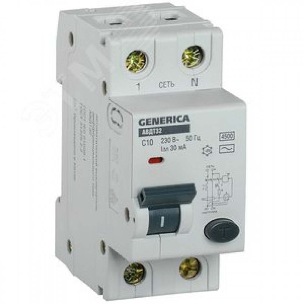Автоматический выключатель дифференциального тока АВДТ 32 C10 - Выключатель автоматический Дифференциального тока GENERICA