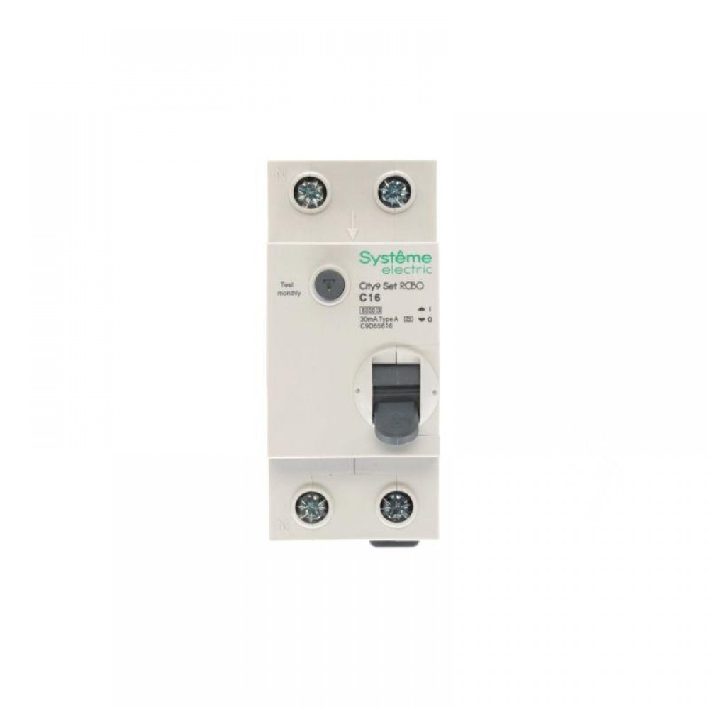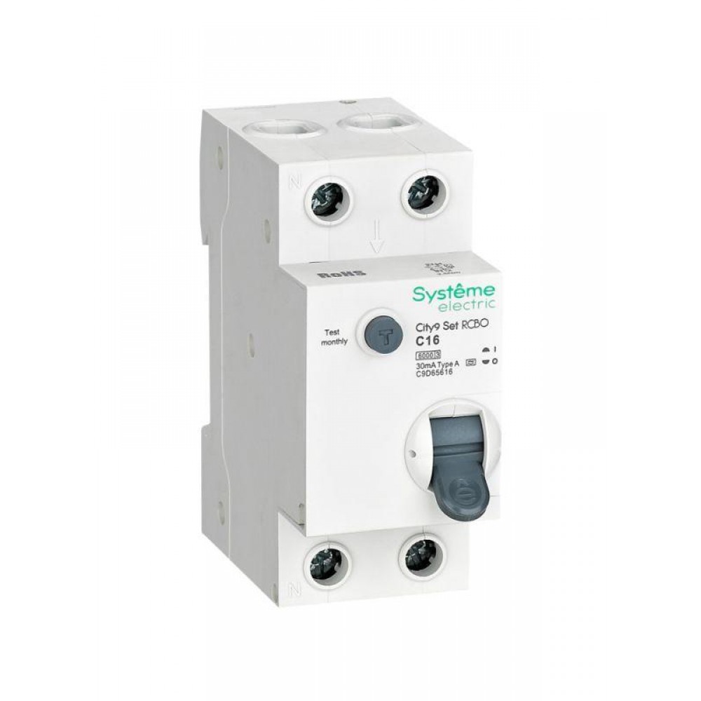 Автоматические выключатели дифференциального тока (АВДТ) серии City9 Set Systeme Electric,1P+N, номинальный ток 16 А, характеристика С, Icn = 6 кА, ток утечки 30 мА, тип А. АВДТ применяется в электрических сетях напряжением 230В. Предназначен для защиты сети от перегрузок, людей от поражения электрическим током и токов короткого замыкания. Уставка по току утечки 30 мА обеспечивает гарантированную защиту людей при прямом прикосновении. Кнопка тест обеспечивает проверку работоспособности аппарата. Крепление на DIN-рейку шириной 35 мм. Безопасные клеммы (ранее Schneider Electric R9D55616).