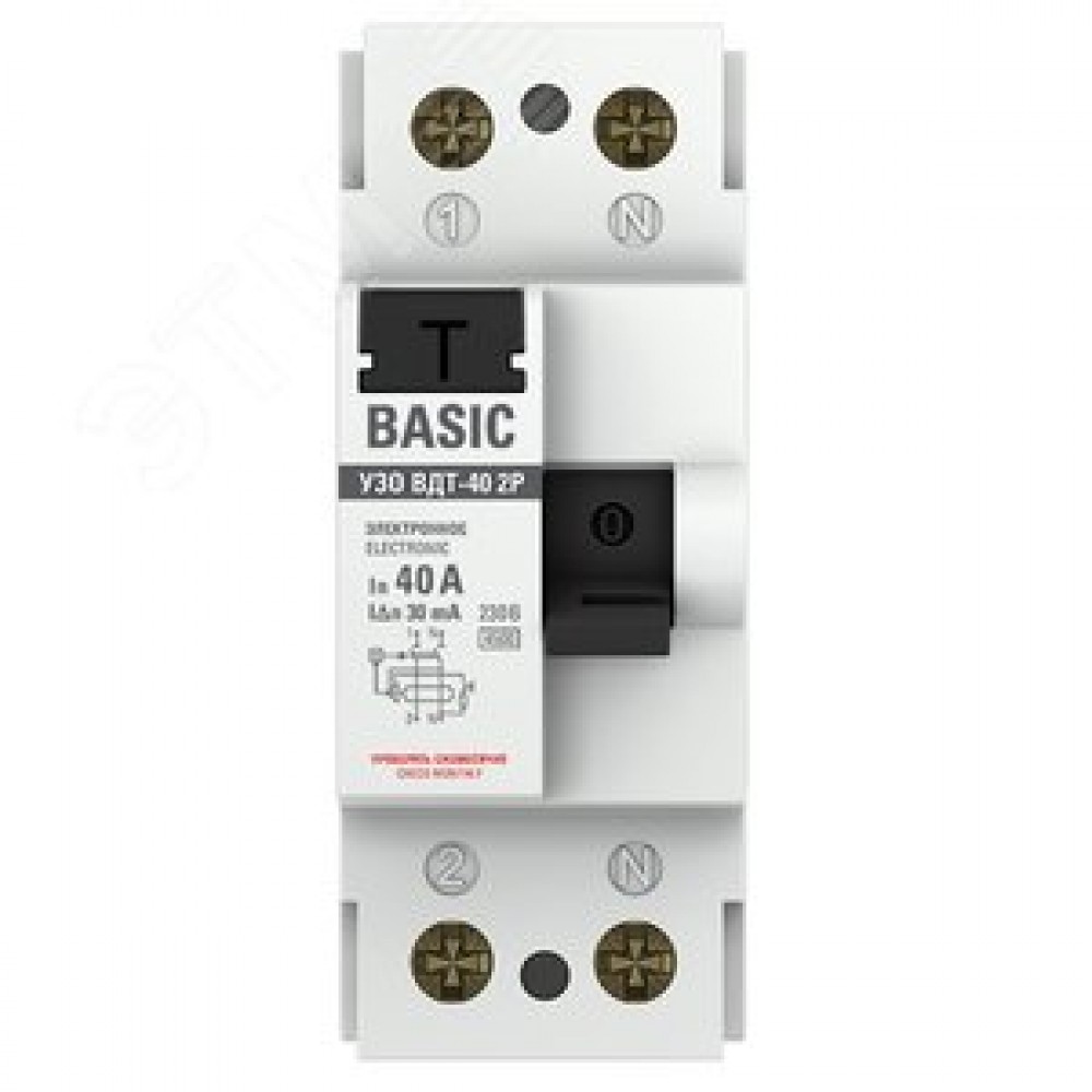 | Комплектация | выключатель дифференциального тока ВДТ-40 2P 40А 30мА тип АС электронный 4,5кА BASIC |