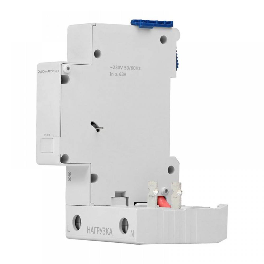 Устройство защиты от дугового пробоя OptiDin AFDD-63 представляет собой блок обнаружения дугового пробоя и предназначен для применения в однофазных электрических сетях переменного тока частоты 50/60 Гц с глухозаземлённой нейтралью с номинальным напряжением не выше 230 В и номинальными токами от 1 А до 63 А.