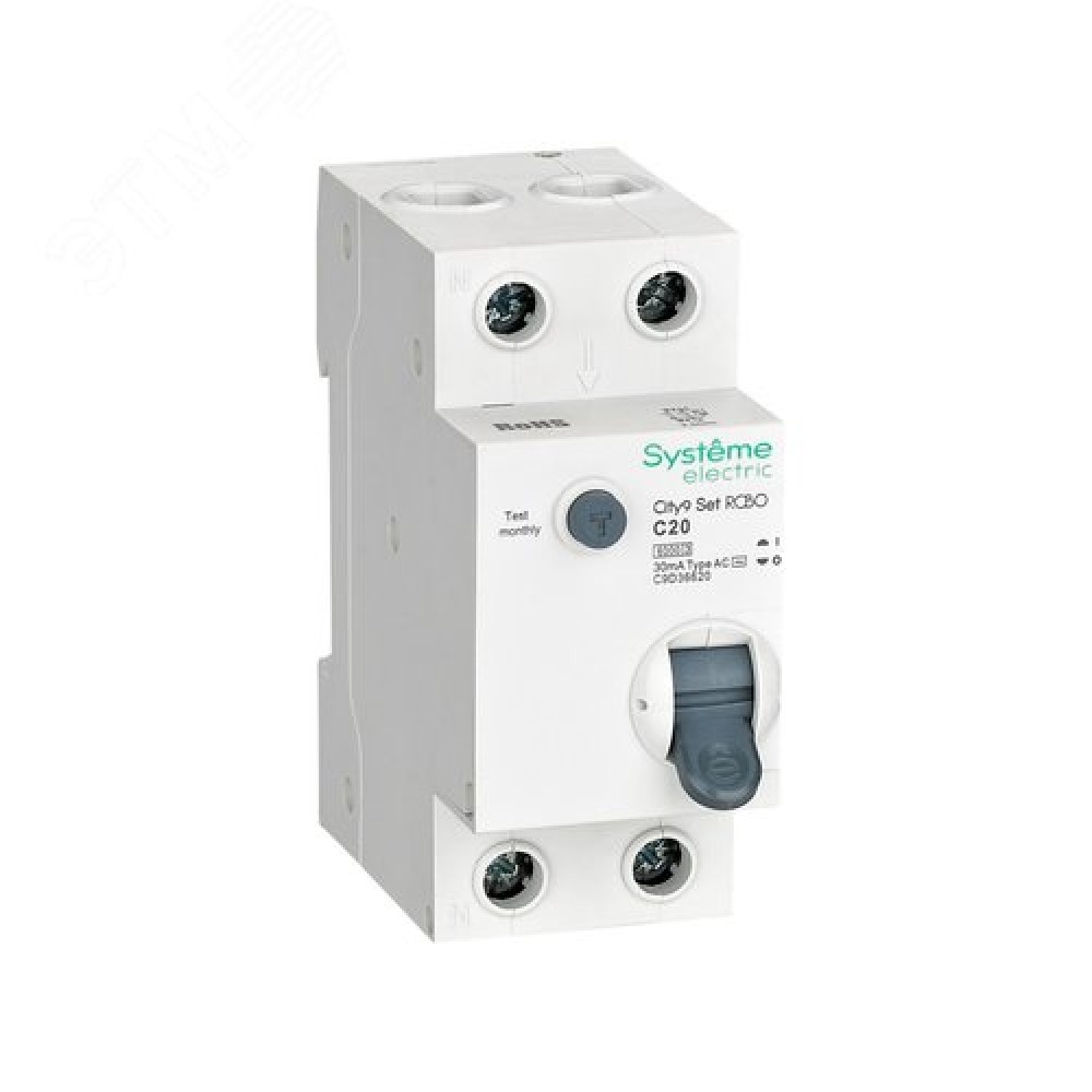 Выключатель автоматический диф. тока (Автоматический выключатель дифференциального тока АВДТ) 1P+N С 20А 6kA 30мА Тип-AС 230В City9 Set