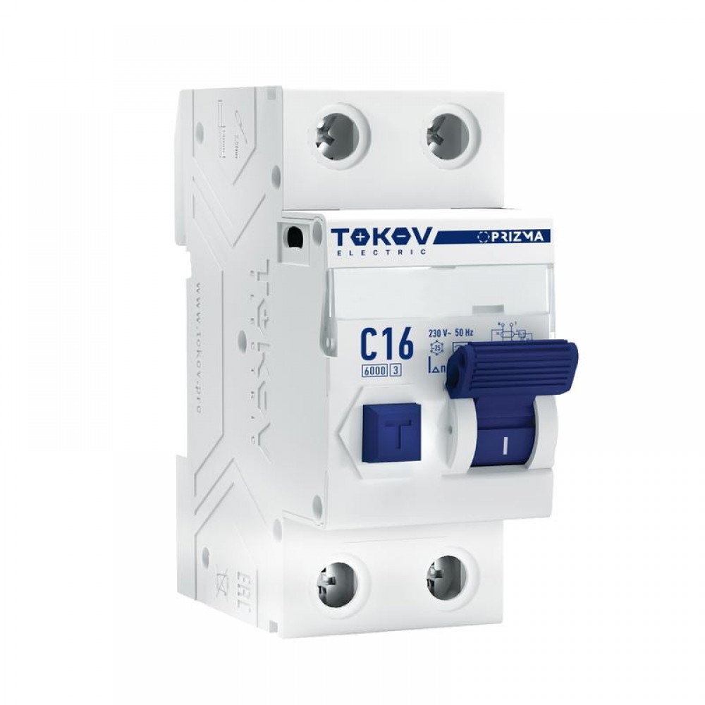 Выключатель автоматический дифференциального тока 2п (1P+N) C 16А 10мА тип AC 6кА PRIZMA TOKOV ELECTRIC TKE-PZ60-RCBO-2-16-10-AC