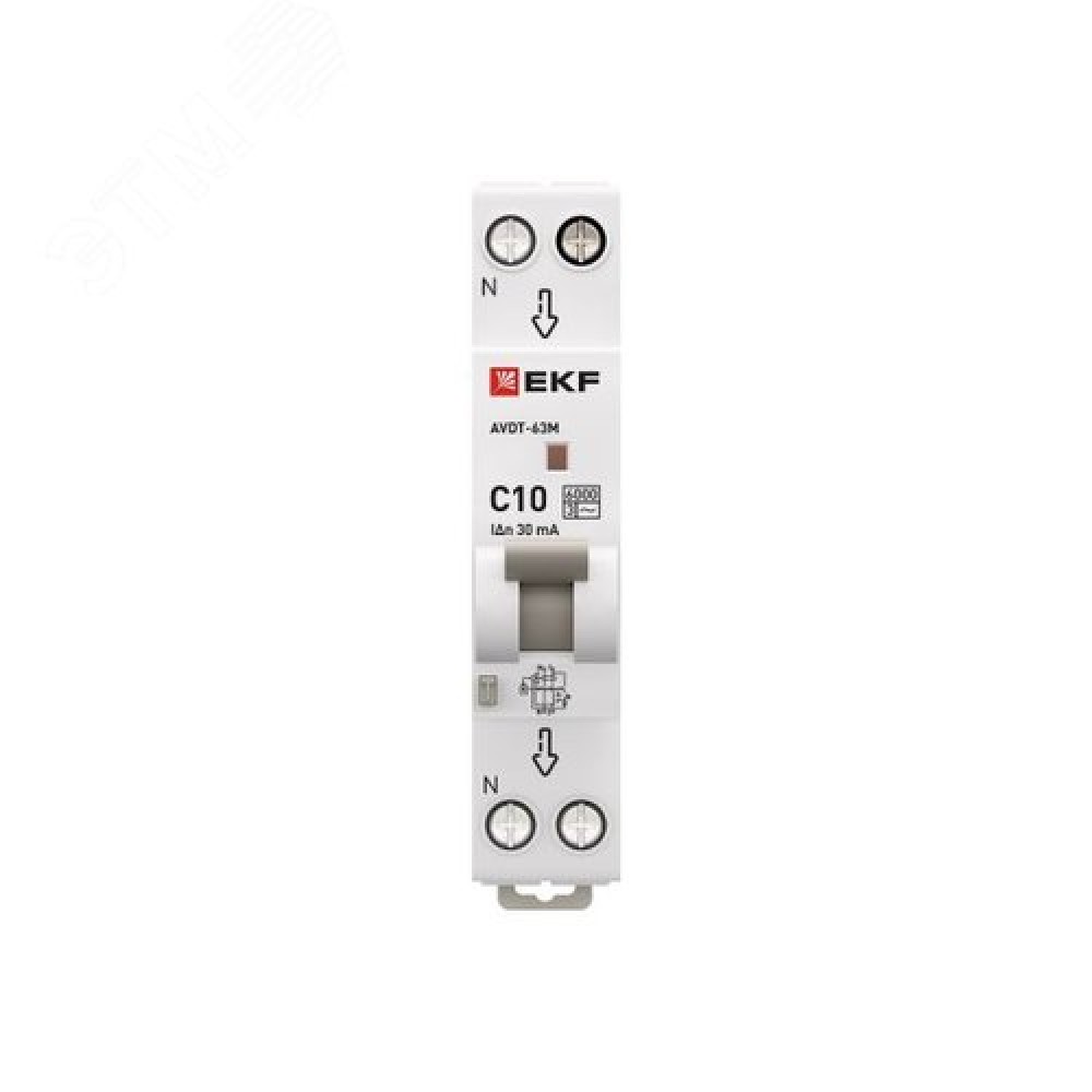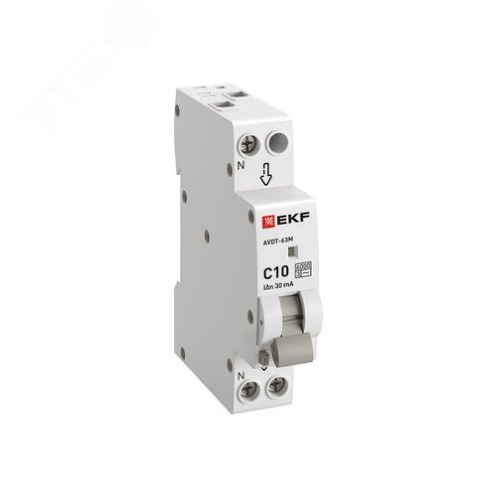 Технические характеристики Выключатель автоматический дифференциального тока АВДТ-63М 1P+N (18 м) 10А 30мА характеристика C тип АС электронный 6кА PROXIMA