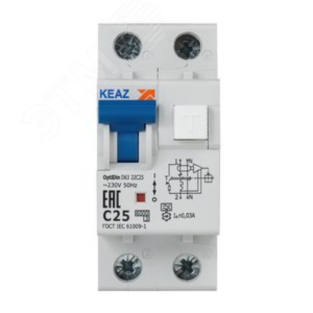 • Выключатель автоматический дифференциального тока АВДТ с защитой от сверхтоков 2П 25А 30мА A OptiDin D63-22C25-A-УХЛ4