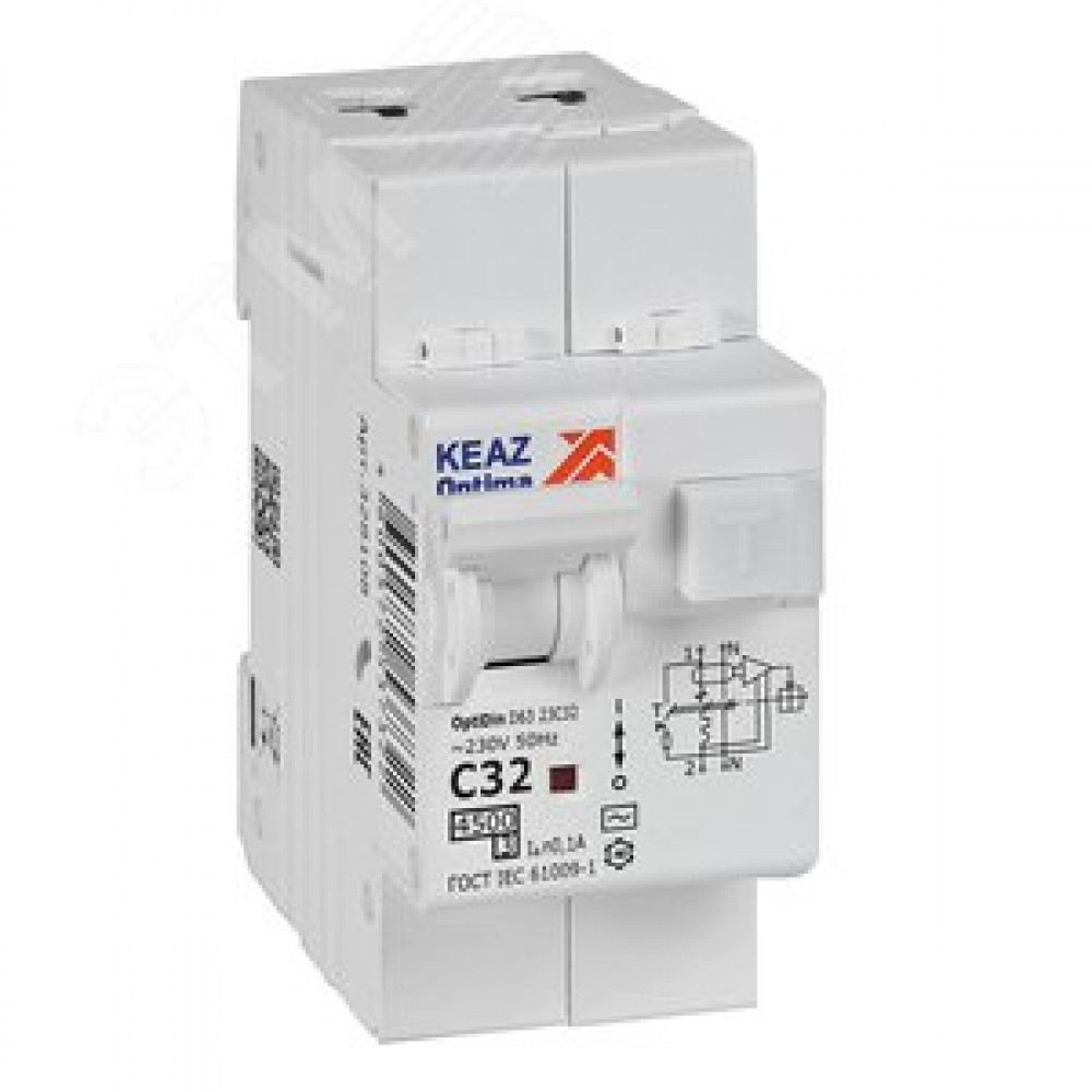 Выключатель автоматический дифференциального тока АВДТ с защитой от сверхтоков 2П 32А 100мА AC 4,5кА OptiDin D63-23C32-AC-У3