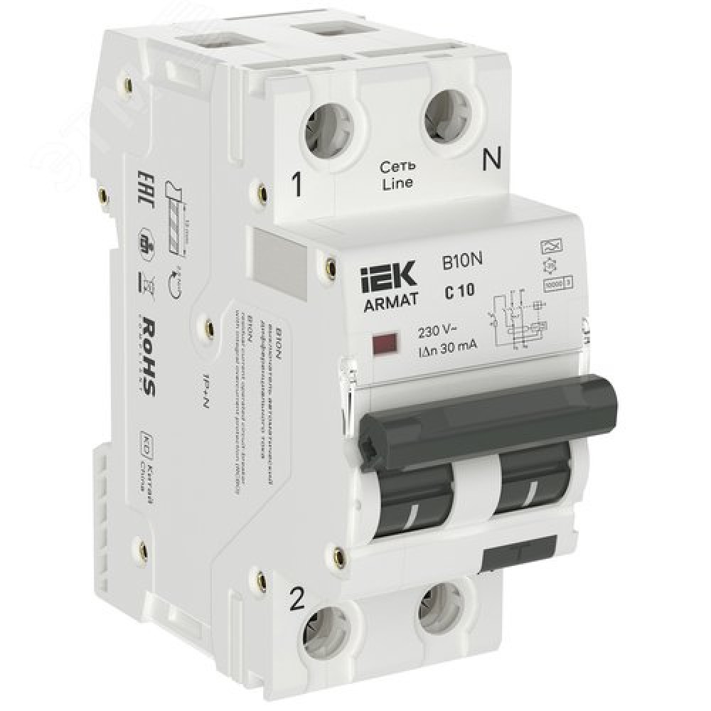 Технические характеристики Выключатель автоматический дифференциального тока B10N 1P+NP C10 30мА тип A (36мм)