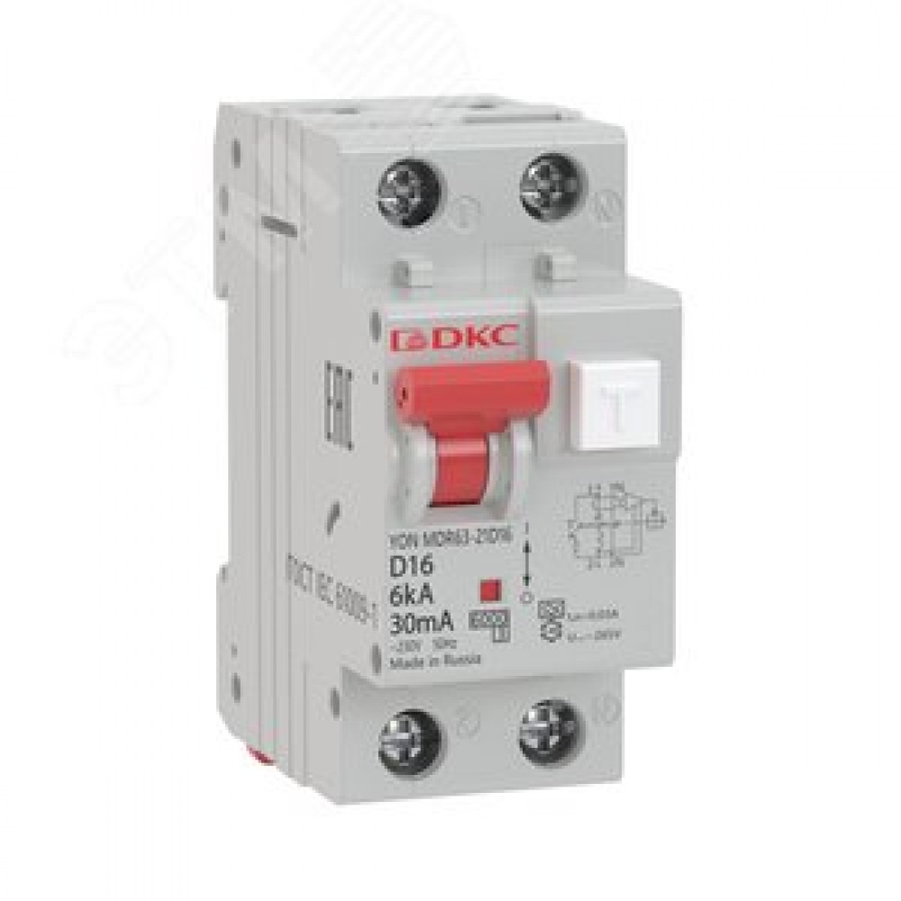 Технические характеристики Выключатель автоматический дифференциального тока двухполюсный MDR63, 20А, 30мА, тип A, C, 6кА, электронный, серии YON PRO