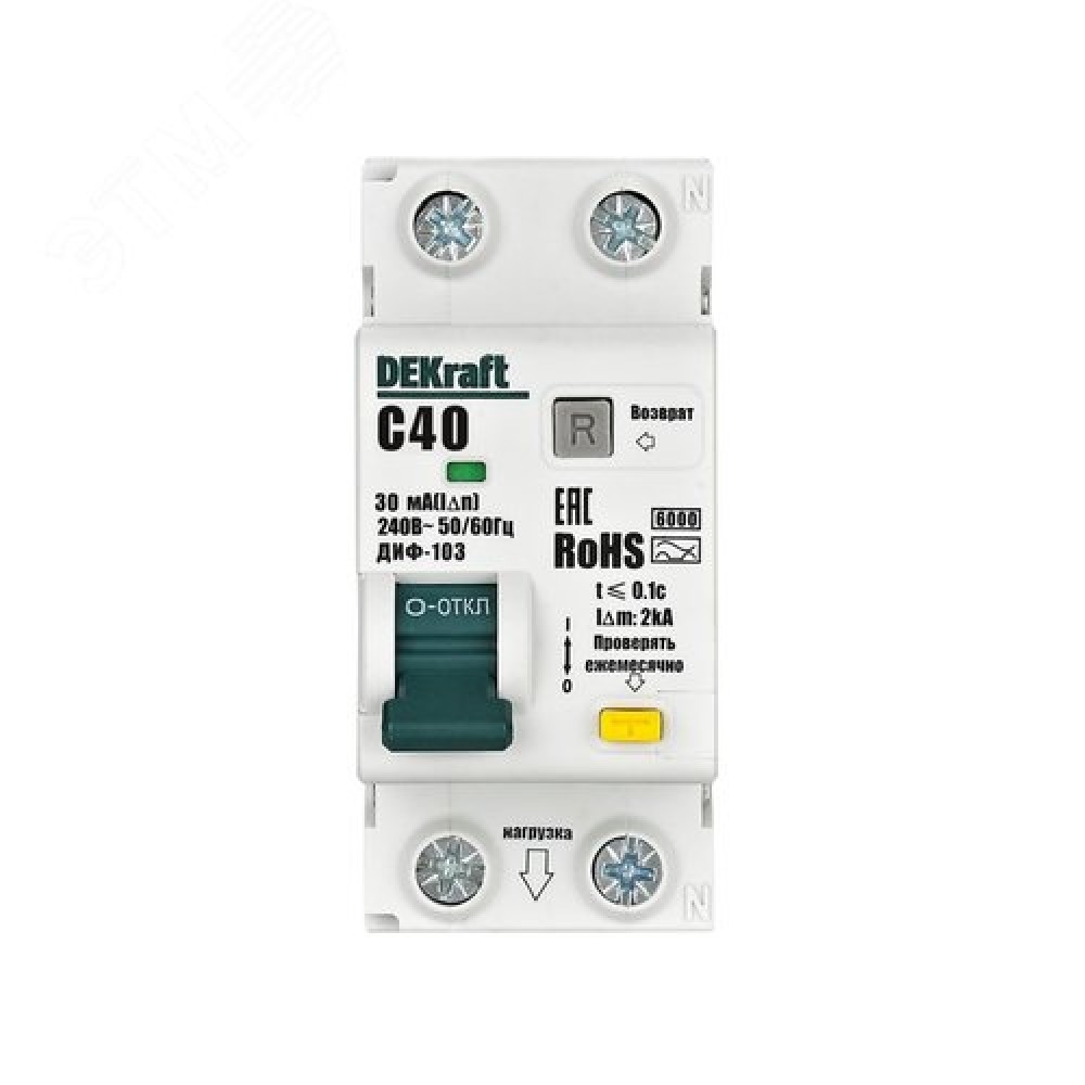 | Возможность отключения нейтралиДа | Гарантийный срок, мес60 | Дифференциальный ток, мА30 |