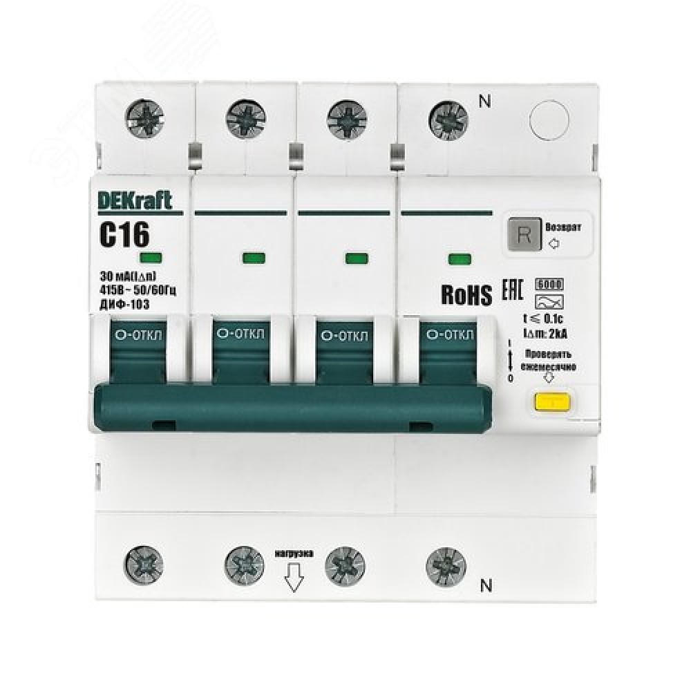Возможность отключения нейтралиДа Гарантийный срок, мес60 Дифференциальный ток, мА30