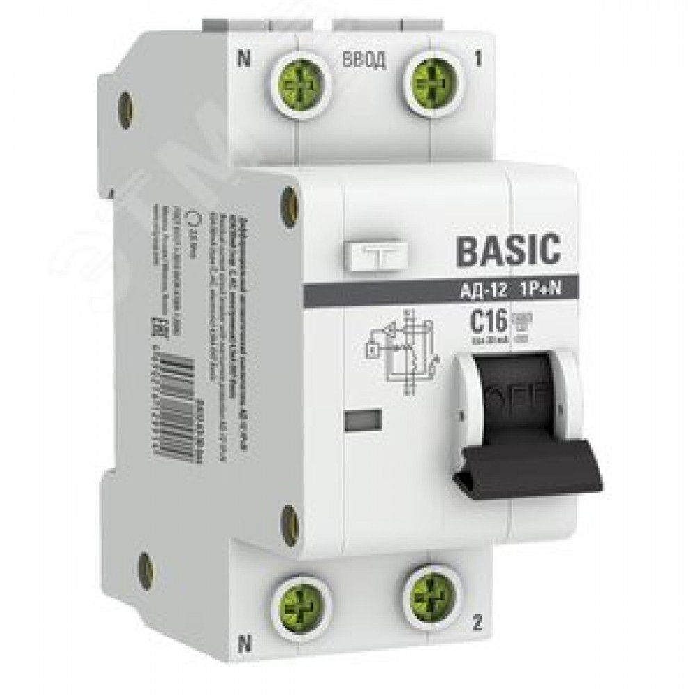 Комплектация АВДТ АД-12 1P+N 16А 30мА тип АС х-ка C эл. 4,5кА Basic