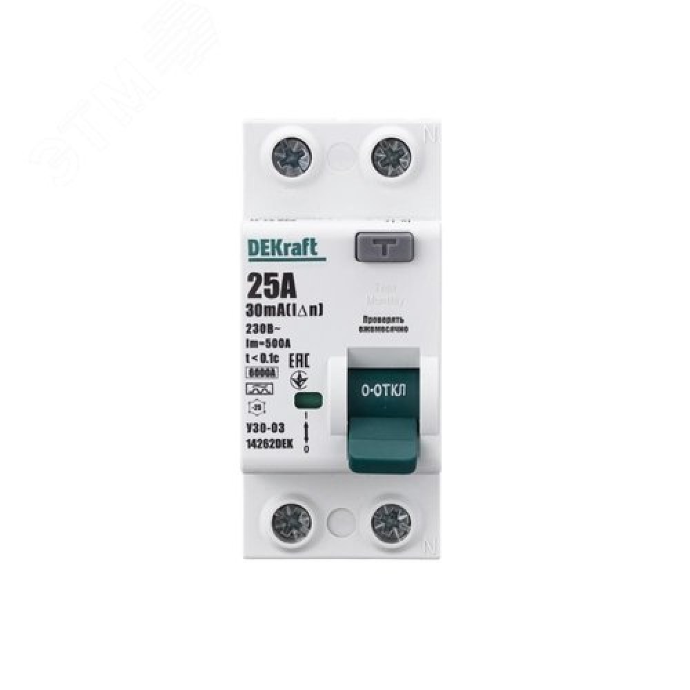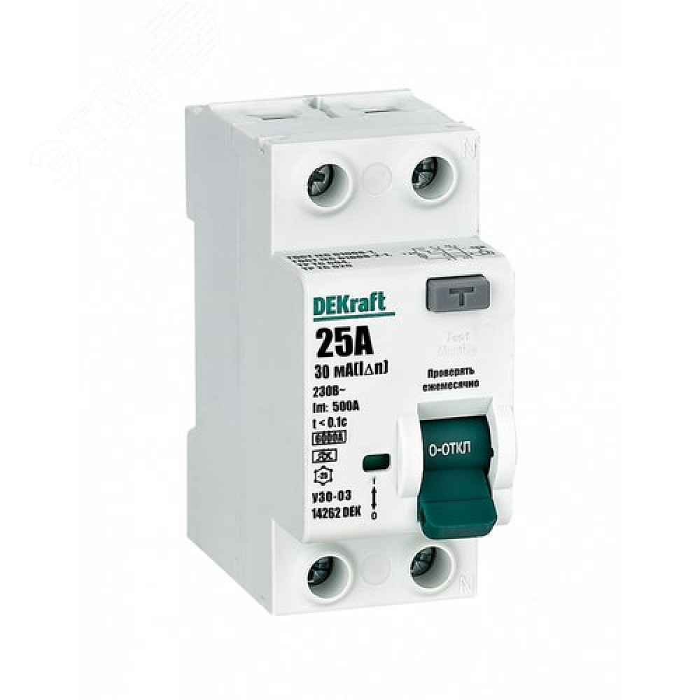| Номинальное напряжение, В230 | Номинальный ток, А25 | ПреимуществаТип дифференциального расцепителя A |