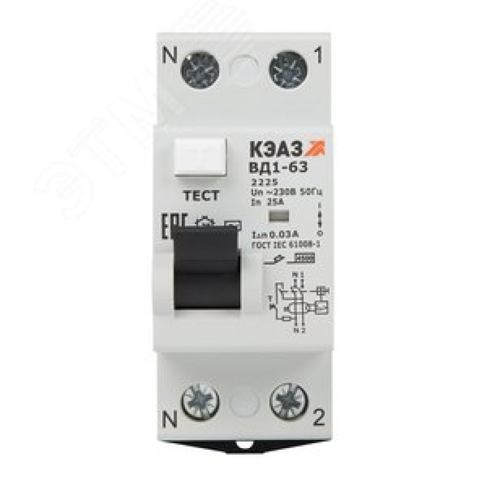 Выключатель дифференциального тока (УЗО) без защиты от сверхтоков 2П 25А 30мА ВД1-63-2225-АС-УХЛ4